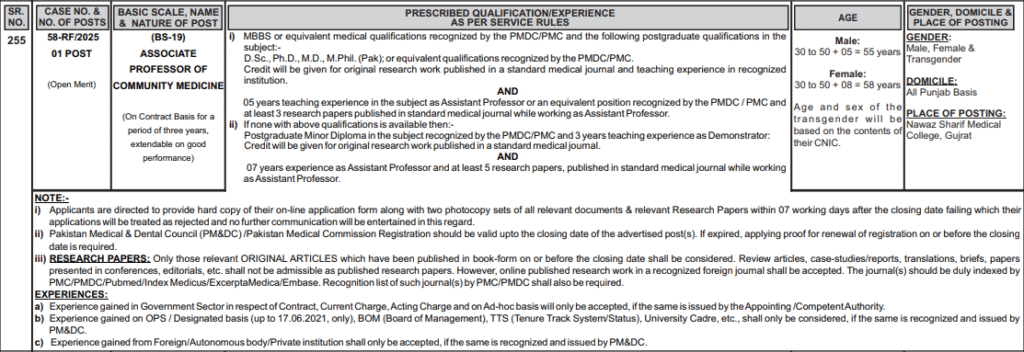 ii) Pakistan Medical & Dental Council (PM&DC) /Pakistan Medical Commission Registration should be valid upto the closing date of the advertised post(s). If expired, applying proof for renewal of registration on or before the closing