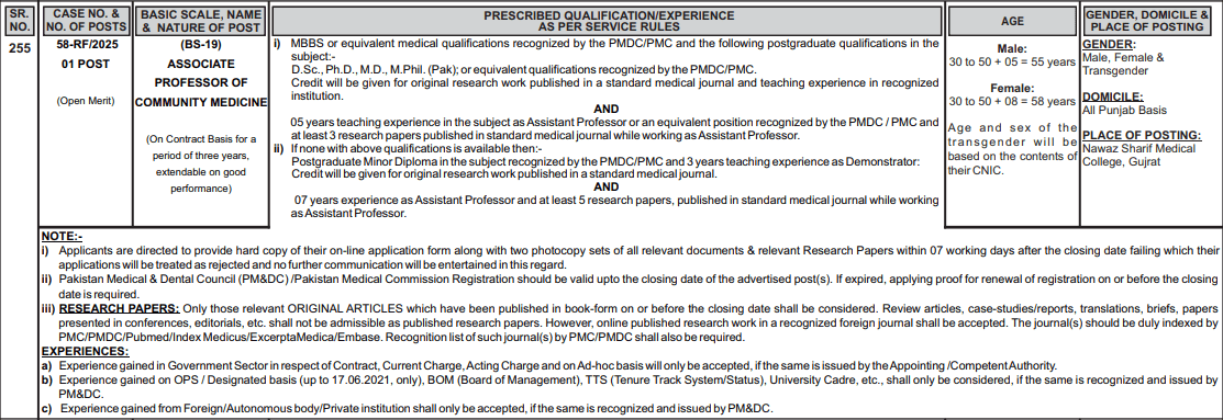 ii) Pakistan Medical & Dental Council (PM&DC) /Pakistan Medical Commission Registration should be valid upto the closing date of the advertised post(s). If expired, applying proof for renewal of registration on or before the closing