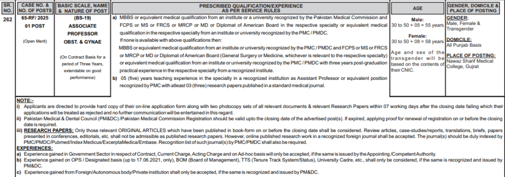 (BS-19)ASSOCIATEPROFESSOROBST. & GYNAE(On Contract Basis for aperiod of Three Years,extendable on goodperformance)