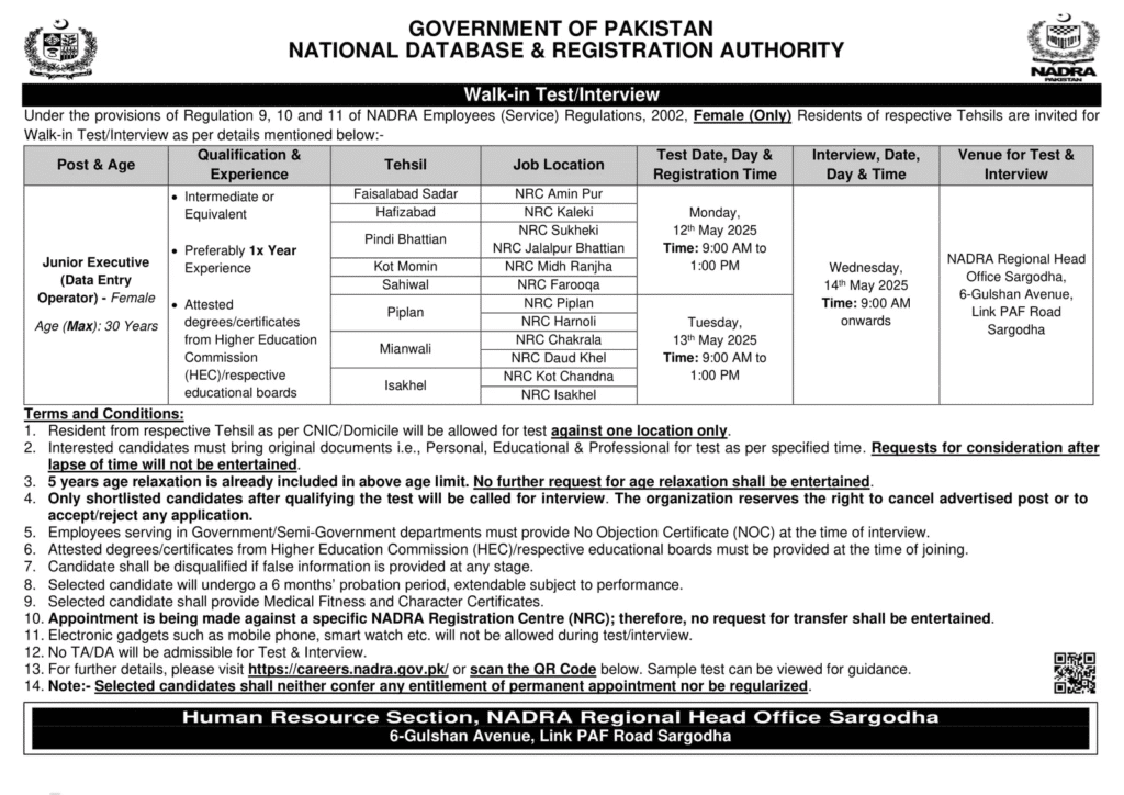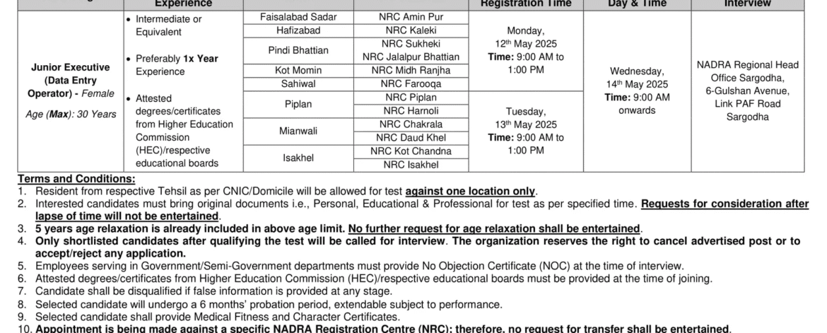 Latest NADRA Jobs 2025 Advertisement