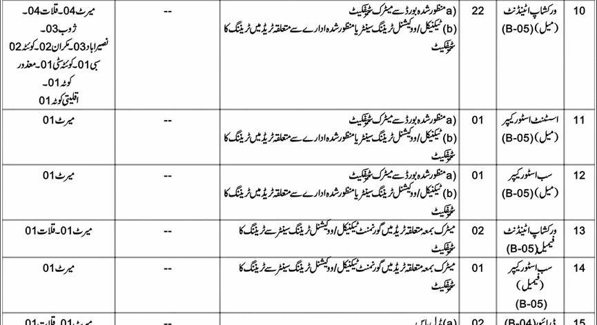 3-year Diploma in relevant trade OR FA/FSc + 1-year certificate in relevant field