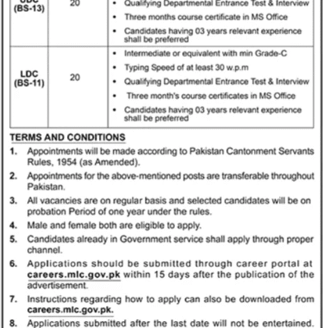 Eligible candidates must apply through the official online portal at careers.mlc.gov.pk within 15 days of this advertisement’s publication. Instructions regarding the application procedure are also available on the same portal. Applications submitted after the due date will not be entertained.