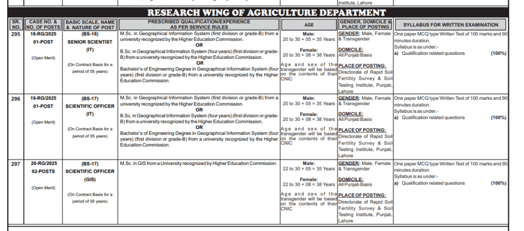 NEW JOBS IN RESEARCH WING OF AGRICULTURE DEPARTMENT 2025 BY PPSC APPLY NOW