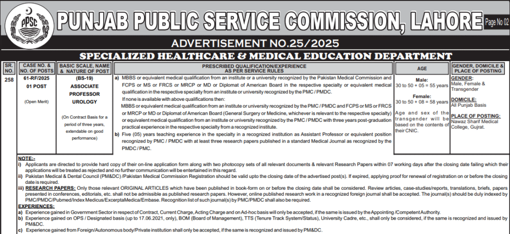 NEW JOBS SPECIALIZED HEALTHCARE & MEDICAL EDUCATION DEPARTMENT BY PPSC 2025