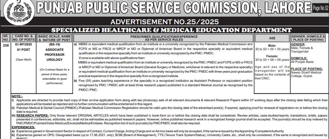 NEW JOBS SPECIALIZED HEALTHCARE & MEDICAL EDUCATION DEPARTMENT BY PPSC 2025