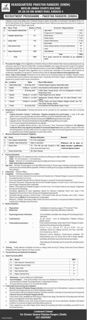 Pakistan Rangers Jobs in Sindh April 2025 for all Pakistan Apply Online
